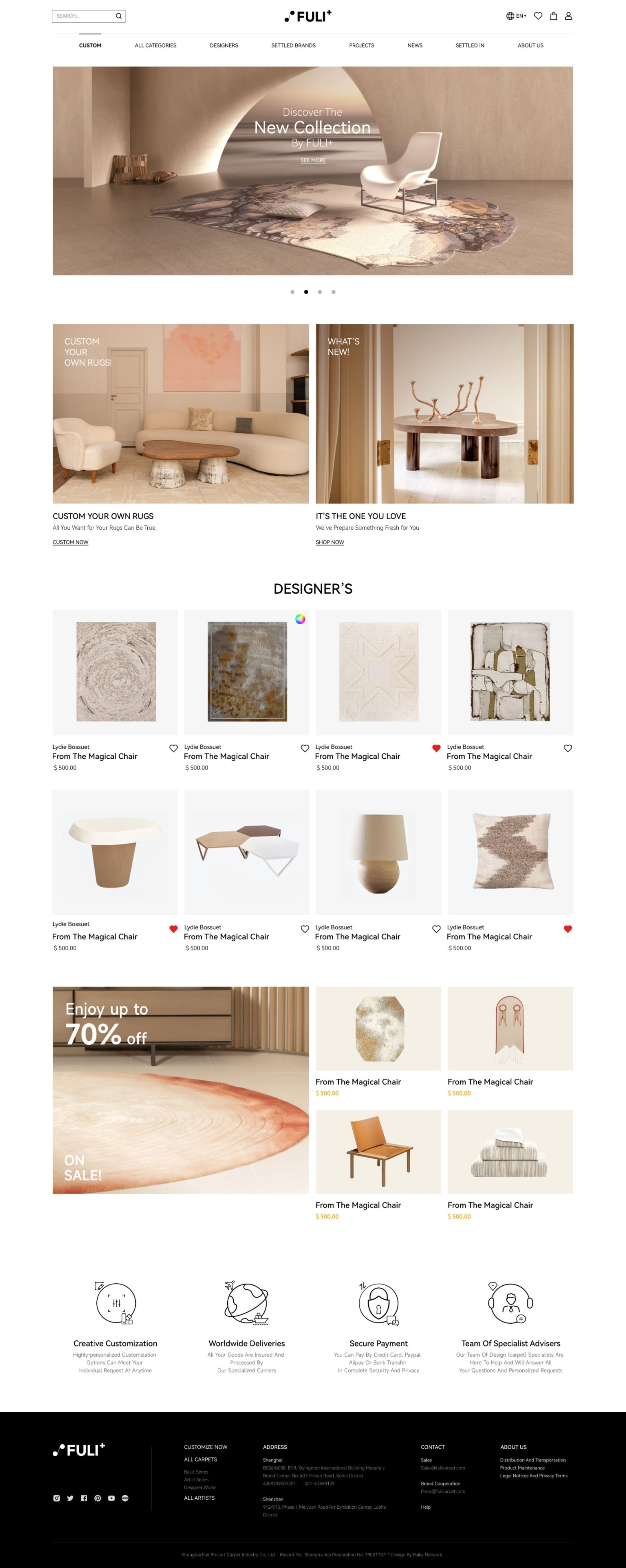 富力的網站布局,一塊塊均勻分布,像極了一張張平鋪開展的地毯,柔軟又溫馨。色色APP大全下载參考了地毯的構成與材質,以羊毛白為網站基底,在此之上搭配富力手工地毯的色彩魔力,猶如在一張大的地毯上編織著富力的魅力,令人著迷。