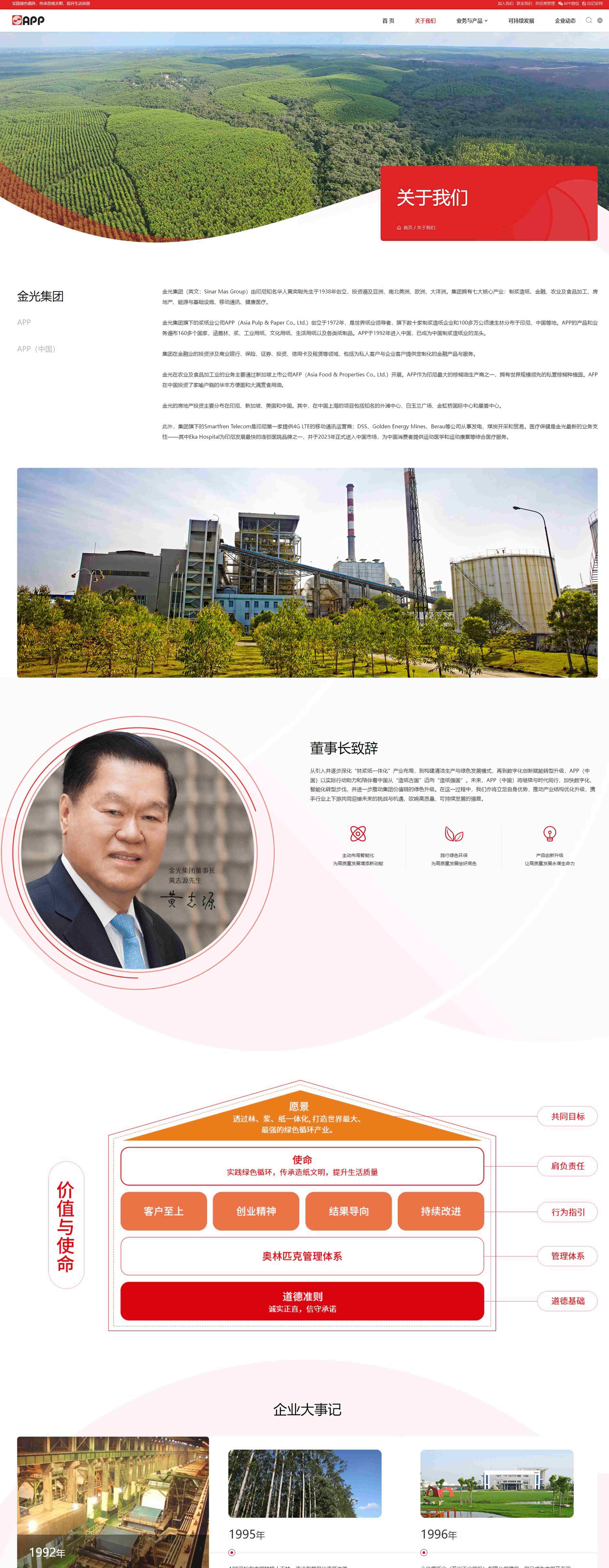 金光集團網站以紅色為主調,彰顯企業活力與熱情,同時輔以淡粉色增添溫馨感,白色營造清晰簡潔的視覺體驗,黑色則賦予穩重與高端氣質。這樣的色彩搭配不僅吸引眼球,還平衡了視覺衝擊力與舒適度,展現了企業的現代感與品牌形象,提升了用戶體驗與市場競爭力。